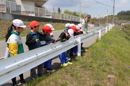 4月28日(火)、2年生が町たんけんに出かけました。この日は泊地区を中心に、慈恩寺などの地域の建物を見学したり、春の植物や昆虫を観察したりしました。春らしい暖かな陽気の中、子どもたちは身近な町の様子にたくさんの発見をし、その一つ一つに目を輝かせながら活動しました。