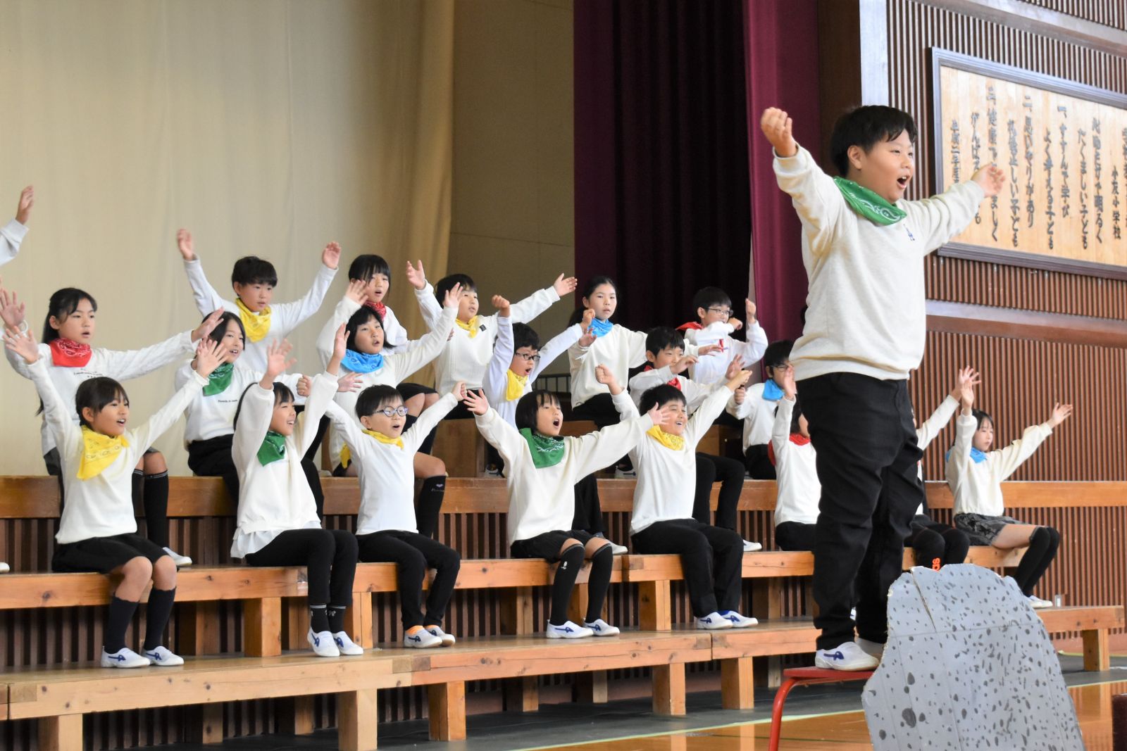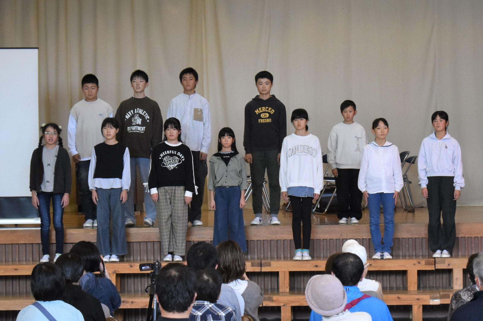 10月18日(土)、令和7年度学習発表会が行われました。当日は130名以上のお客様が会場にお見えになり、出番を待つ子どもたちはみんなドキドキの緊張状態。それでも児童会スローガン「みんなの思いを届けよう~協力・楽しく・元気よく」のスローガンに向かって、一人一人セリフや歌声から思いを届けようと一生懸命な姿が見られた素晴らしい発表会となりました。