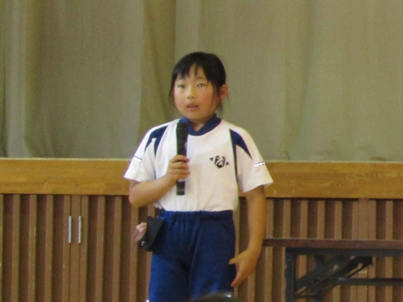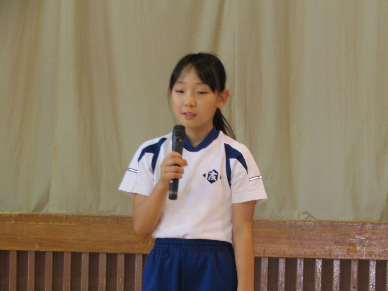 6月17日(火)プール開きが行われ、今年の水泳学習にかける決意やプール使用上のきまりなどが話されました。4年生の子は「クロールで25mスムーズに泳ぎたい。そのために自分の体の動きを意識したり、上手な友だちと比べたりしたい。」とこの夏の決意を発表しました。
