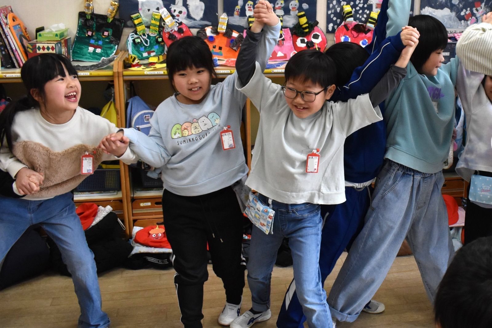 最後はその後輩たちに、「豆まきの時の鬼を退治する方法」や「みんなを鬼から守る方法」を伝授し、保育所を後にしました。