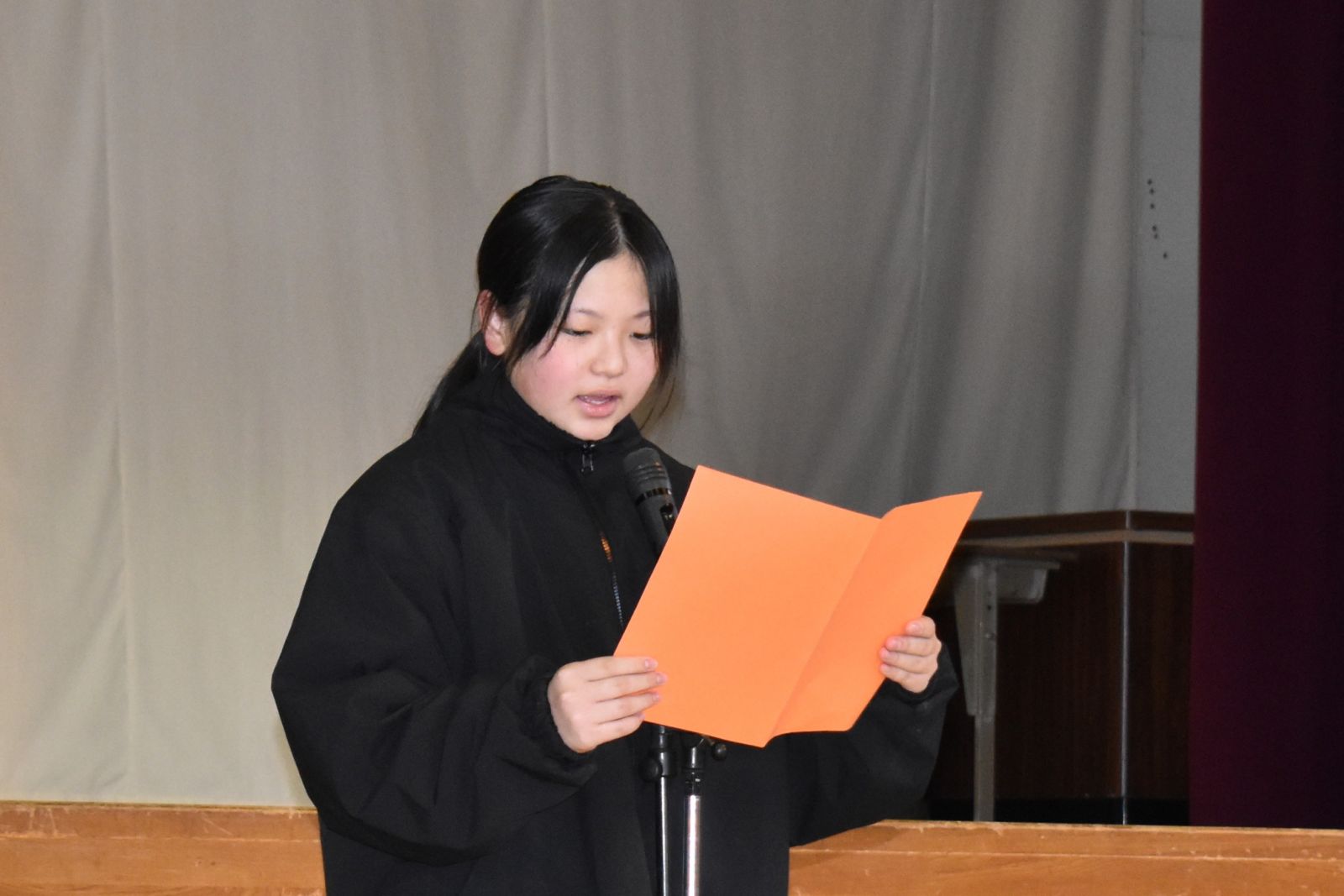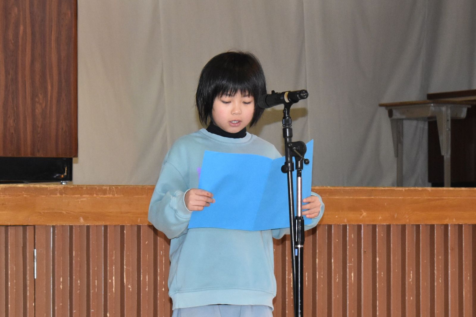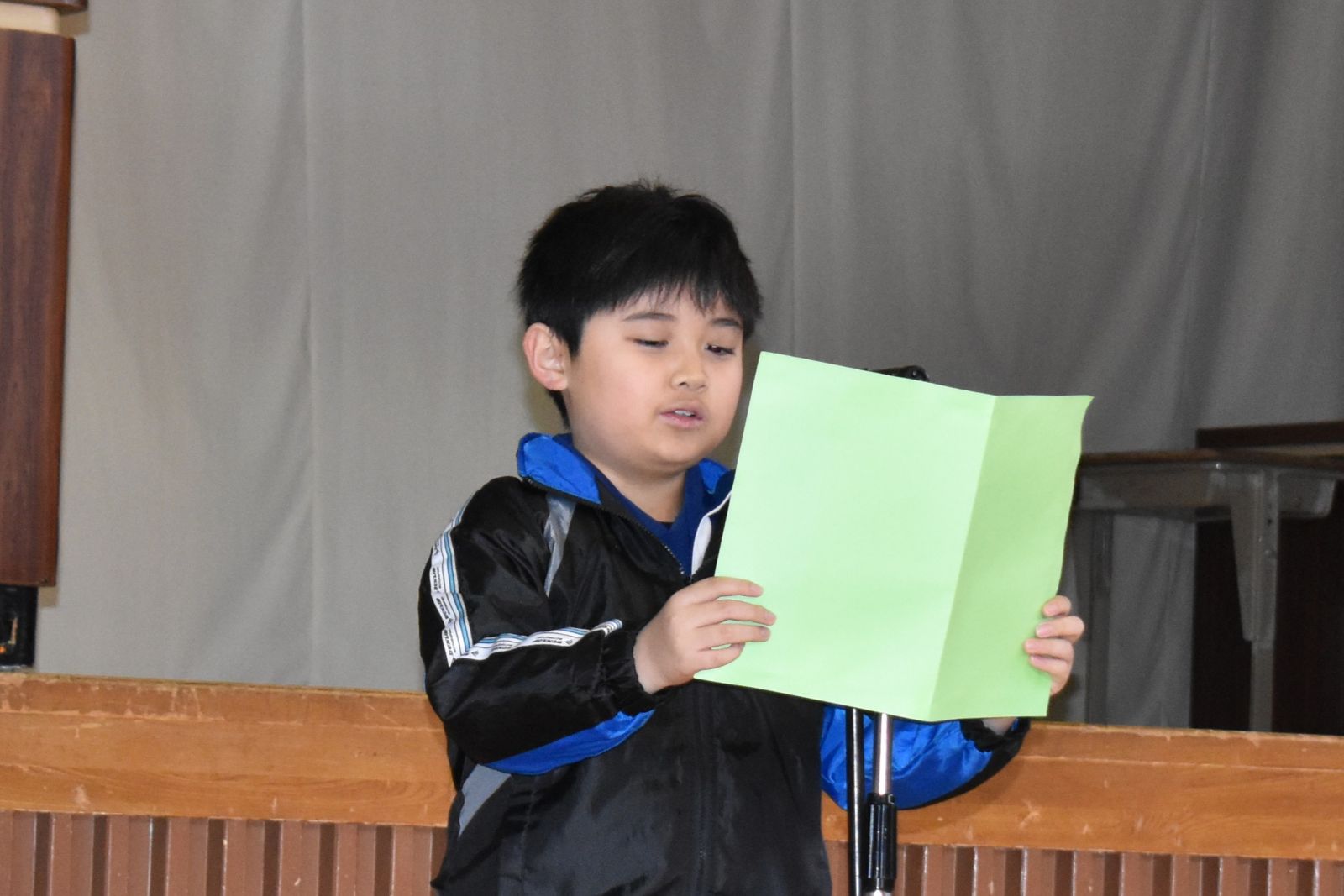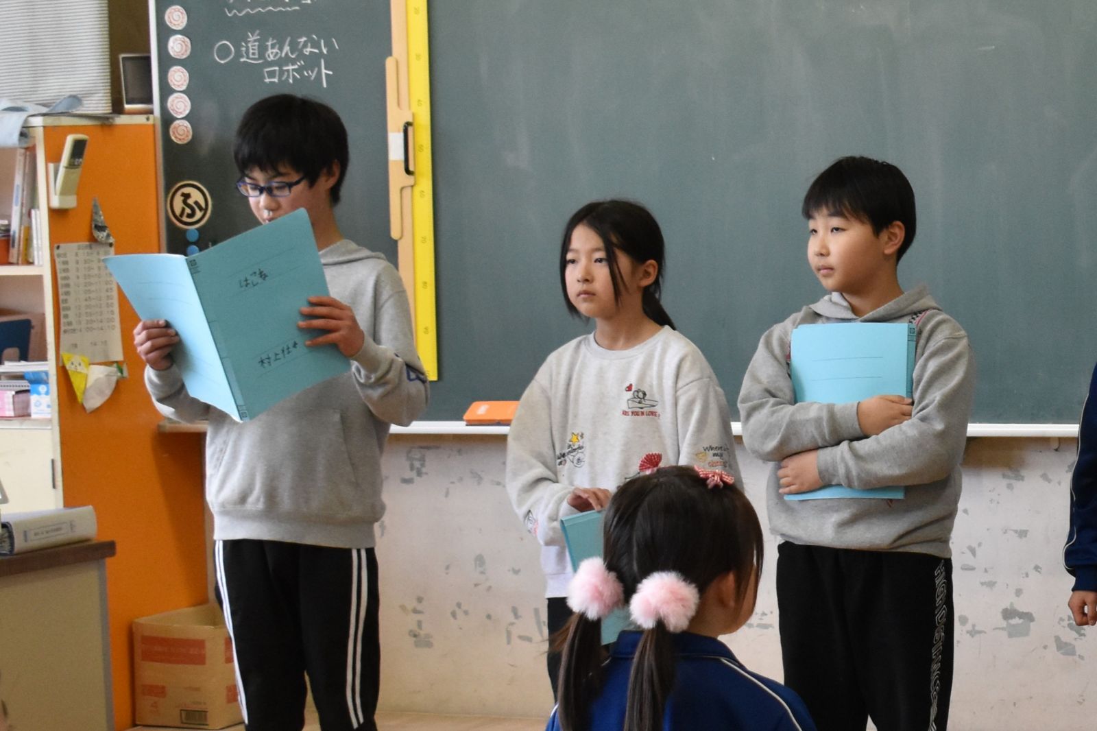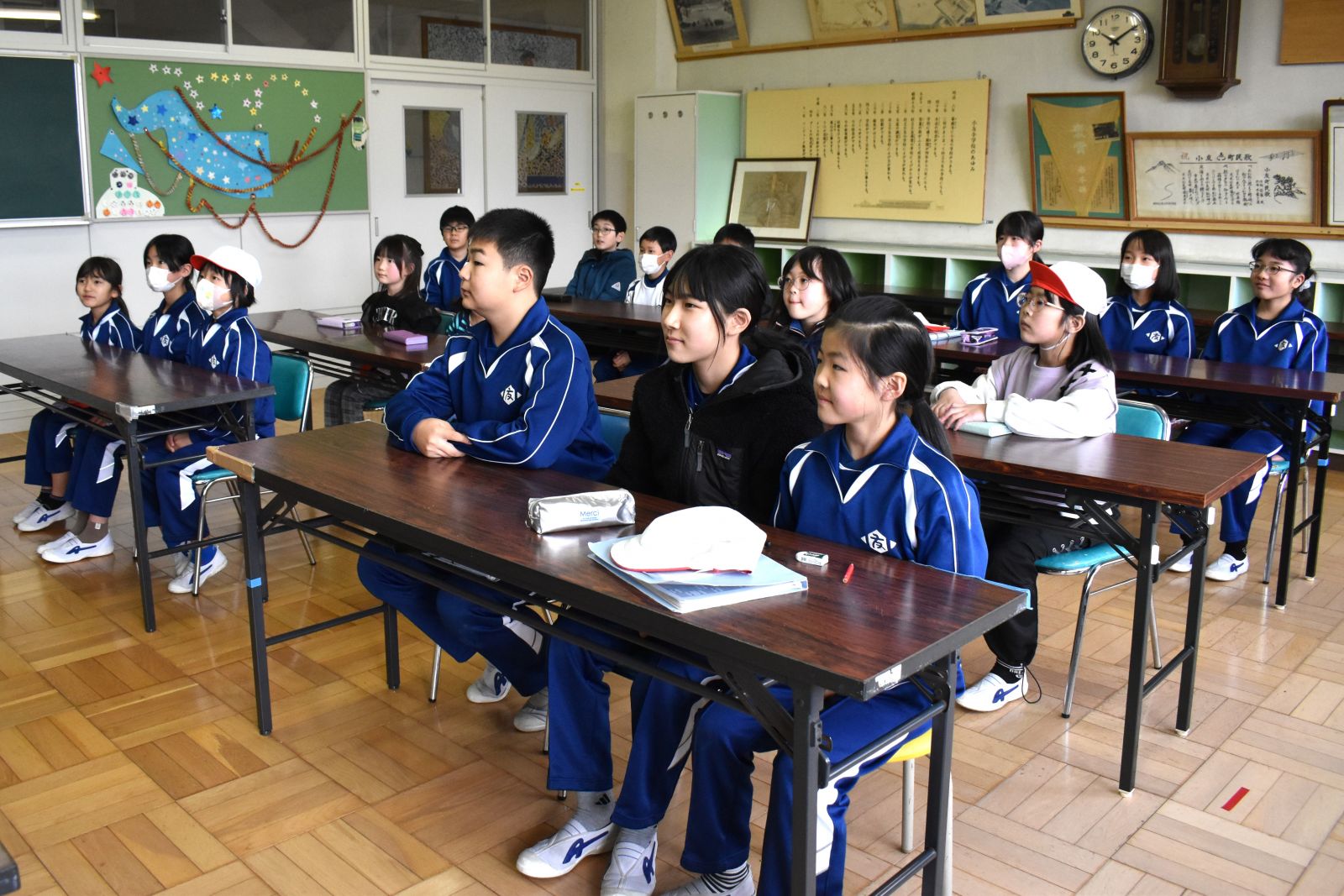 また、20日(火)には、児童代表の作文発表が行われ、1年生は「おねえちゃんとの雪だるまづくりが思い出。なわとびをがんばりたいです。」3年生は「冬休みに一人勉強をがんばって、1日2ページずつ進めたら全部で40ページできました。続ける力が付きました。」そして、5年生は「6年生から小友小学校の伝統や委員会活動を引き継ぎながら、一日一日を大切に過ごしていきたいです。」とそれぞれの思い出や3学期に向けての決意を発表しました。