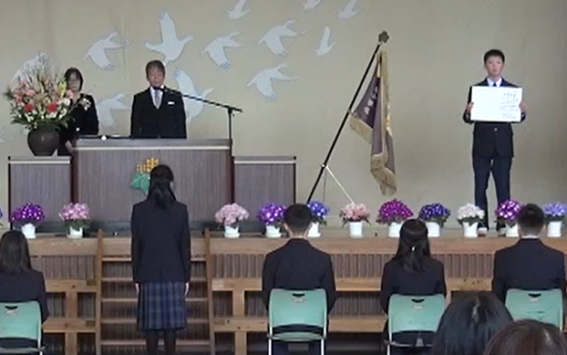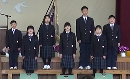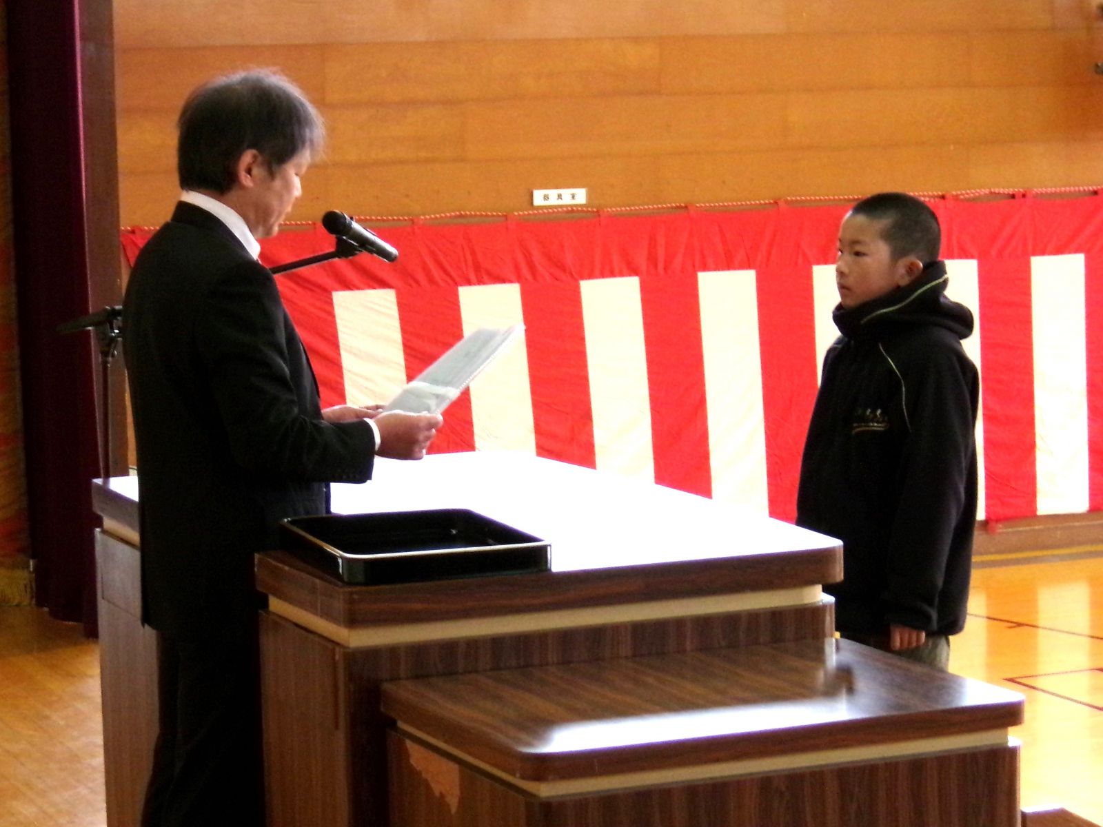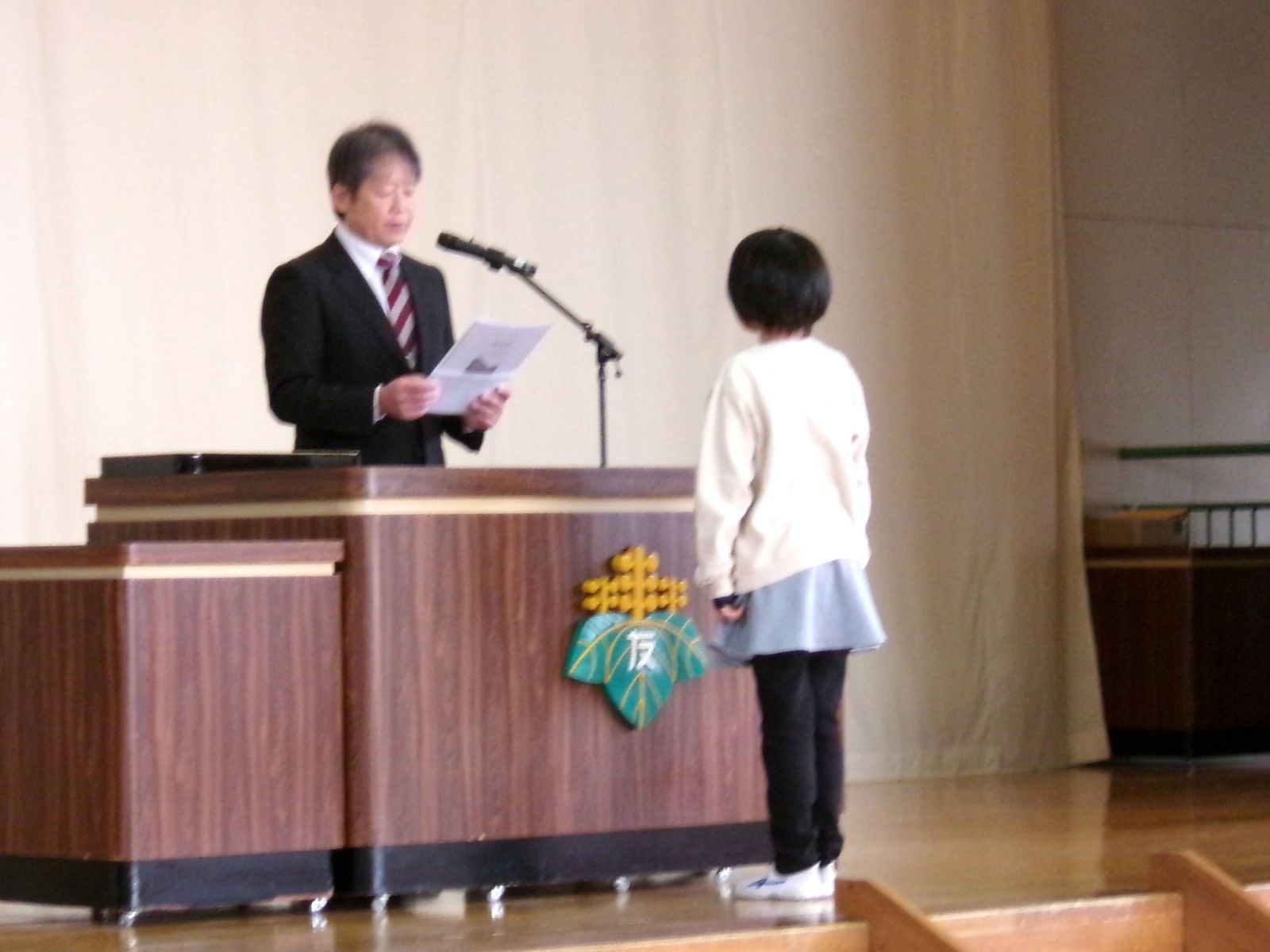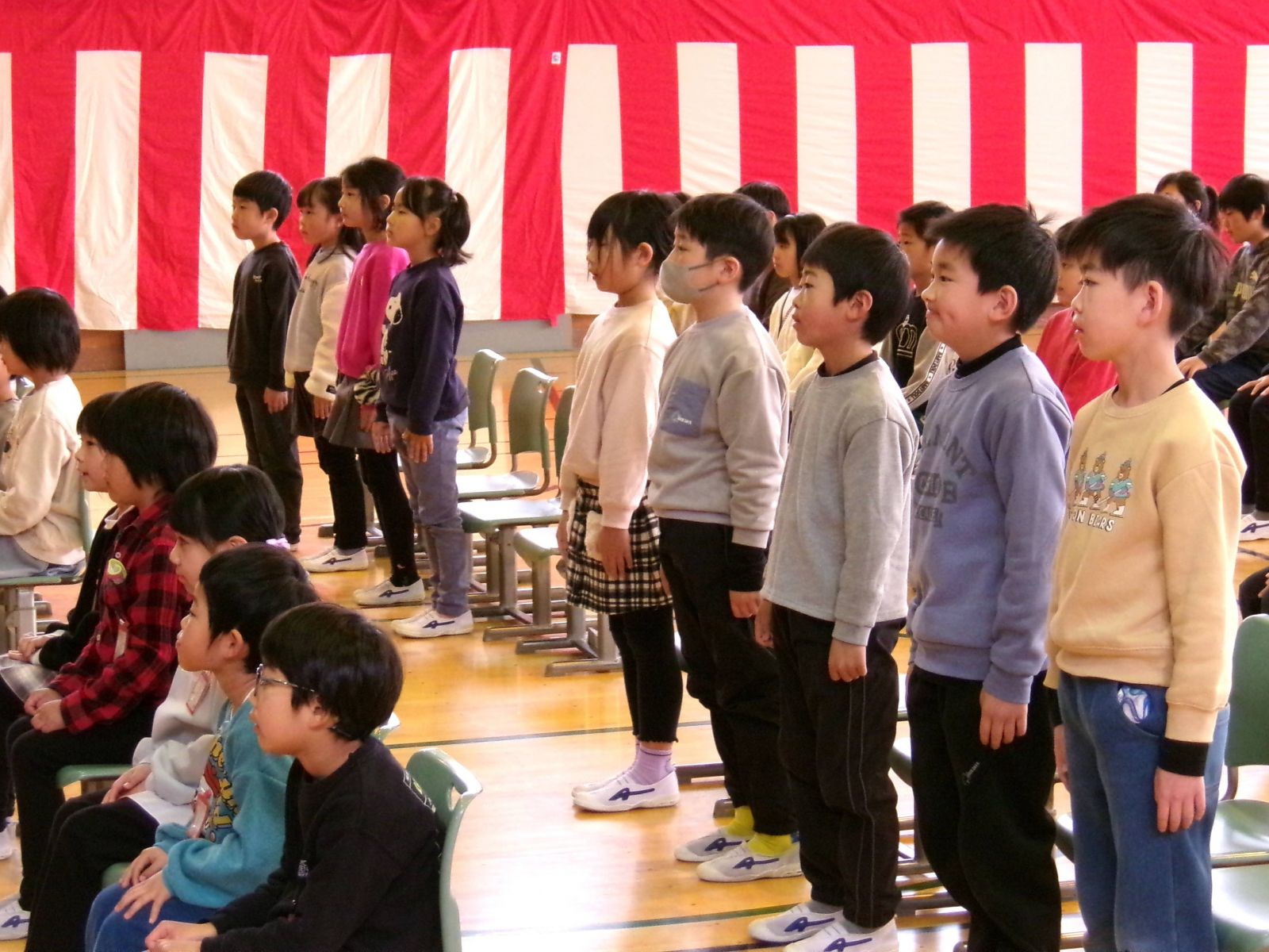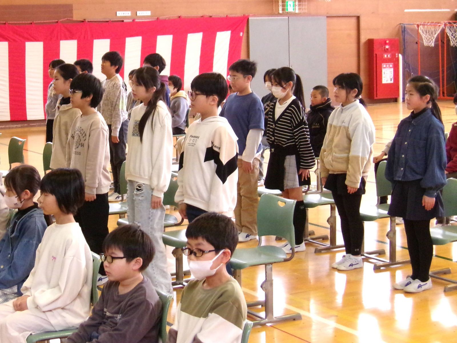 3月17日(火)修了式が行われ、各学年の代表児童に修了証書を手渡しました。証書を受け取る子どもたちの真剣な眼差し、背中がピンと伸びた姿勢からは、今年1年の成長の様子と新学年に向けた力強さが感じられました。