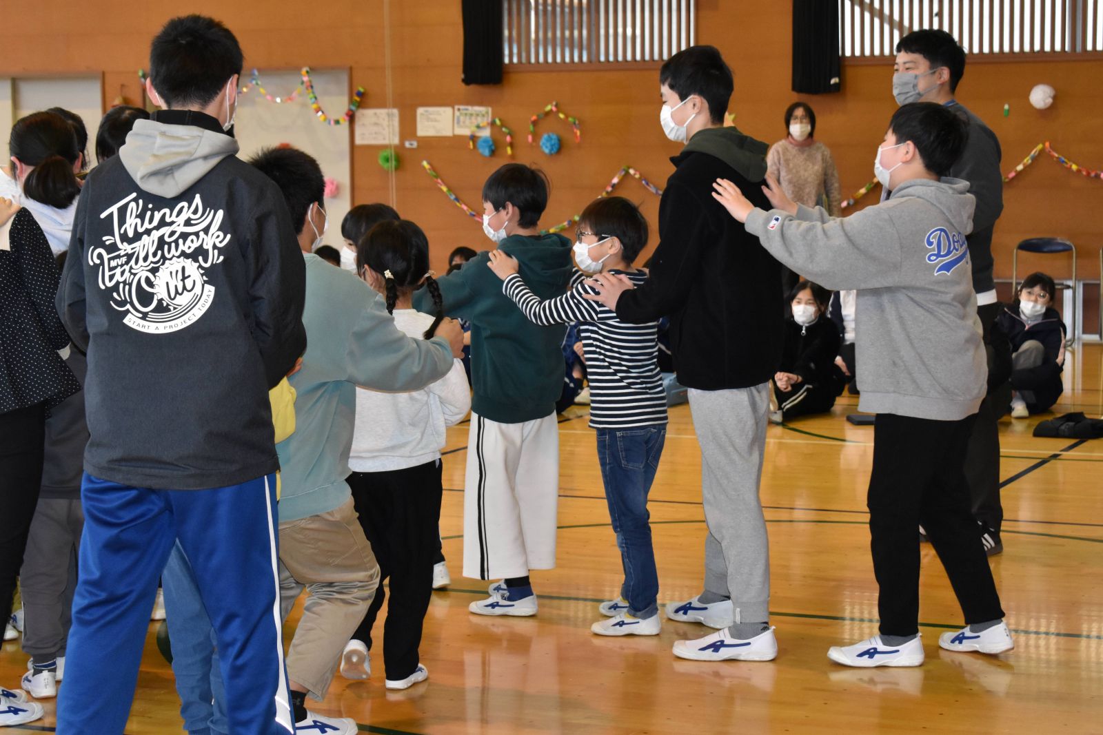 1年生は、6年生と一緒に「じゃんけん汽車ポッポ」
