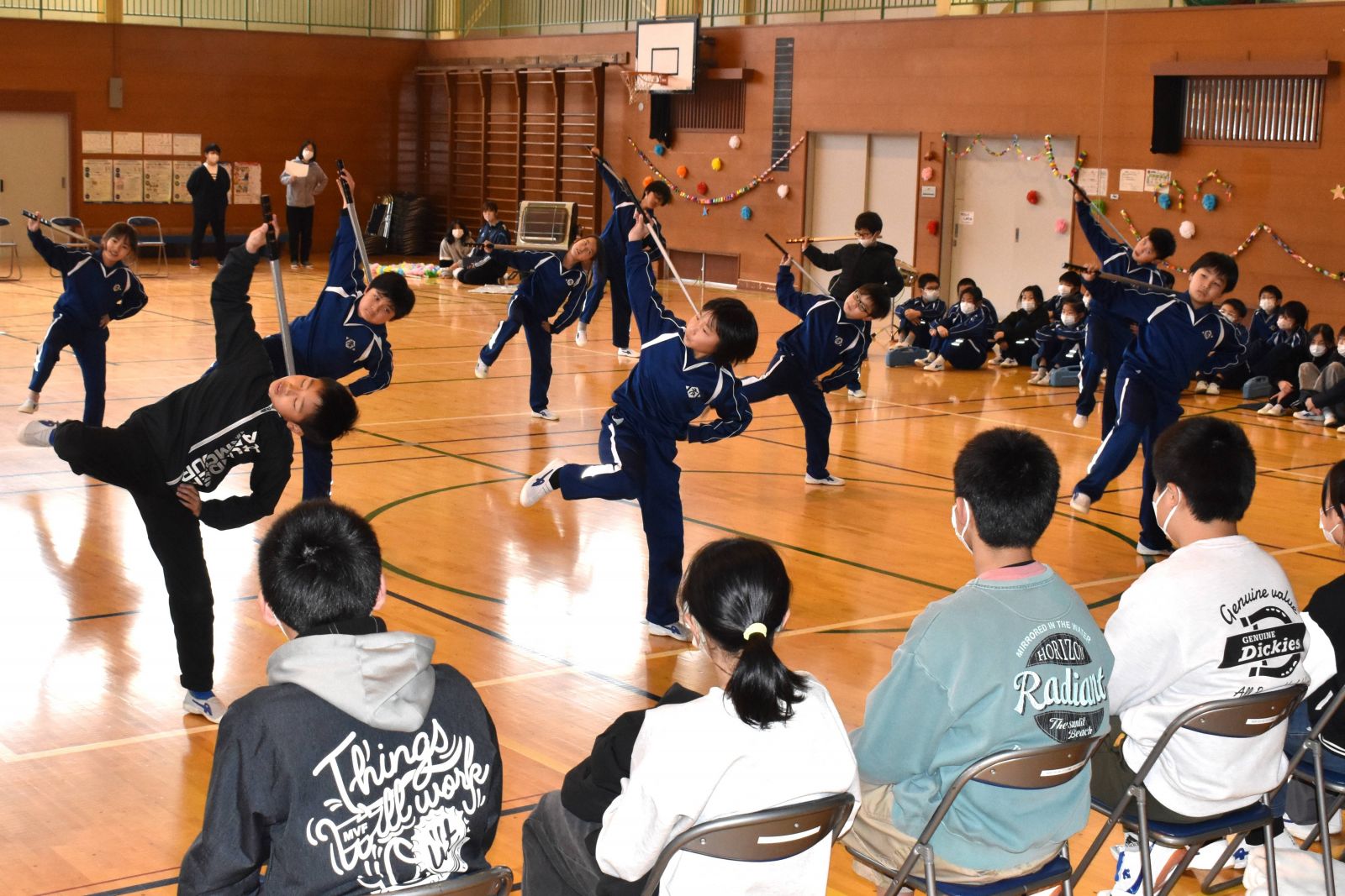 3年生は、6年生から教えてもらった田束剣舞を披露