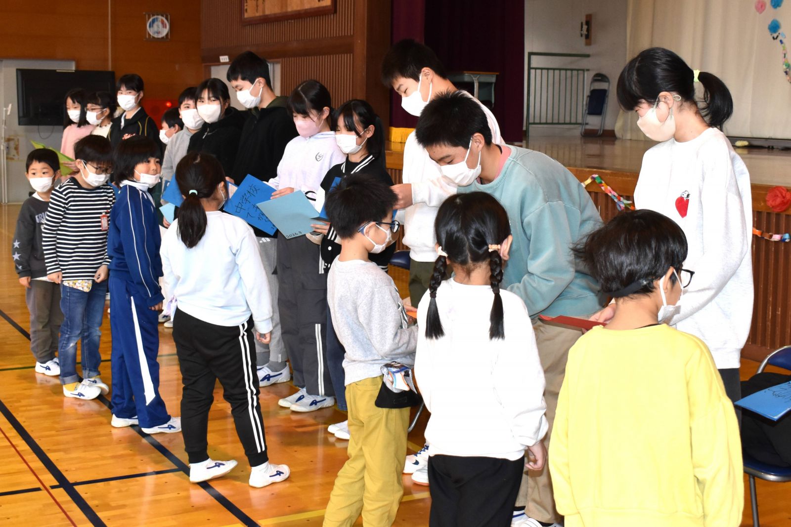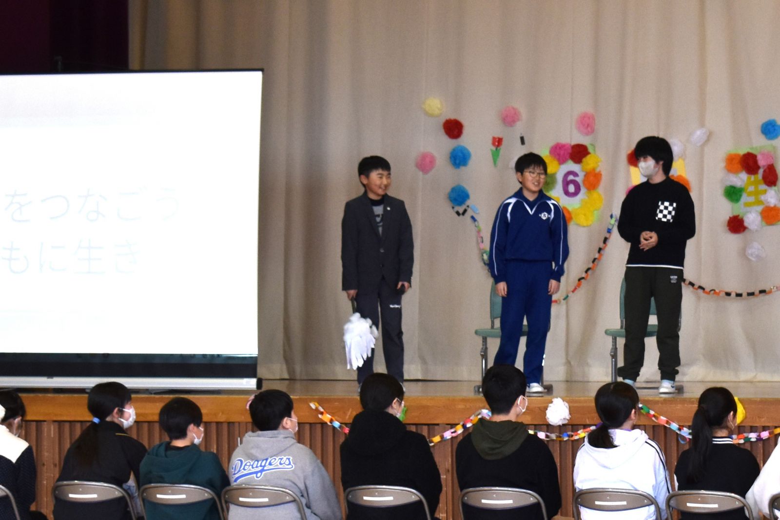 3月3日(火)、児童会新執行部が中心となって企画立案した「6年生を送る会」が開かれました。子どもたちはこの日に向けて各学年で練習に取り組んできた”出し物”を順に披露。中には6年生相手にクイズを出したり、一緒にゲームをしたりと、互いに楽しむ姿も見られました。また、学年それぞれに6年生へのメッセージも盛り込まれていて、感謝の気持ちであふれる会となりました。