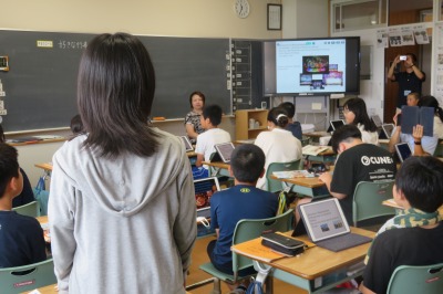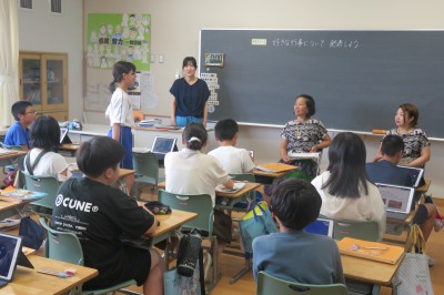 7月3日(木)、6年生の英語の時間、当市在住のタイ出身の方においでいただき、全て英語で陸前高田市を紹介しようという授業を行いました。