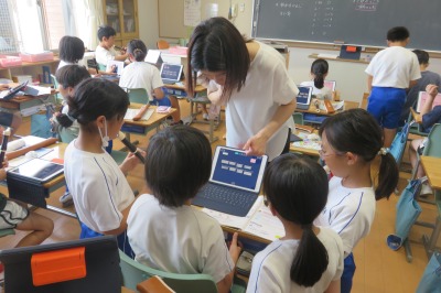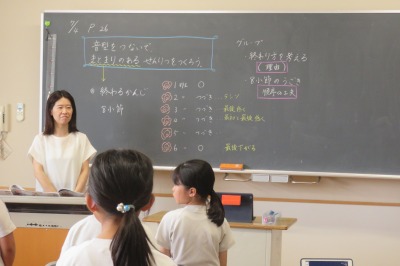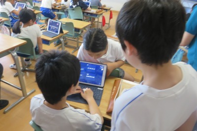 今日の互見授業は4年生の音楽の授業です。自分で短い曲を作って、班ごとに一つの曲を完成させるというものでした。