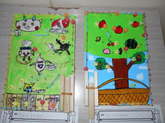 4年生教室前に展示しています。コリントゲームを工夫して作りました。どうぞご覧ください。