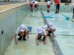 31日(火)午前中、全校児童と職員でプール掃除を行いました。天候が心配されましたが、子どもたちが一生懸命掃除をしてくれたので、予定よりも早く終了できました。プールの底のペンキ塗りの作業があるため、プール開きは16日(木)を予定しています。プール用具の準備をお願いいたします。