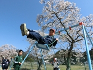 先週から少しずつ咲き始めた桜は、あっという間に花開き、校庭をやさしい春の色で包み込んでいます。