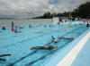 2時間目に3・4年生が、3時間目に5・6年生が、それぞれ一般財団法人水難学会の着衣泳指導員の方々にご指導いただきました。写真は、空のペットボトルを利用して「浮き」の姿勢を保つ練習の様子です。