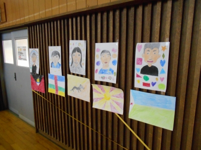 ↑会場の飾り付けには6年生の似顔絵もありました。